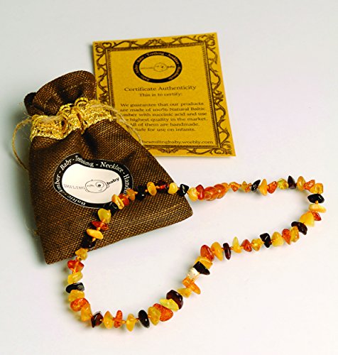 - Baltic Amber Teething Necklace For Babies (Unis3x)- Drooling Problem & Pain Reduce Properties. Certification Guaranteed - Nature Made - Highest Quality Handmade Jewelry. Mothers Approved Remedies.