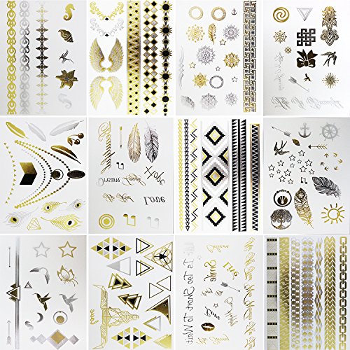 - $29.99 (59.84% Off) 12 Premium Sheets - Metallic Flash Temporary Tattoos - Gold and Silver Bling - 2 packs, 24 sheets