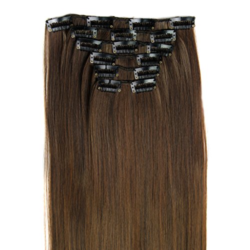 - $9.90 ISABELLE HAIR Straight 22 7pcs Fashion Full Head 16 Clips in Synthetic Hair Extensions 140g (dark brown mixed with auburn)