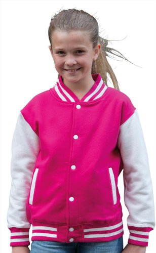 - $20.95 AWDis Hoods Kids Varsity Jacket - Hot Pink / White - 34