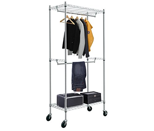 - $69.99 (30.00% Off) HLC Rolling Double Rod Clothing Rail Garment Storage Shelves